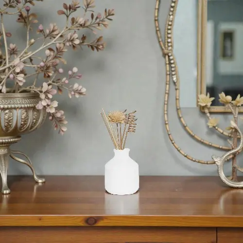 Room Fragrance: Keep your home or office smelling fresh with this ceramic reed diffuser pot white.